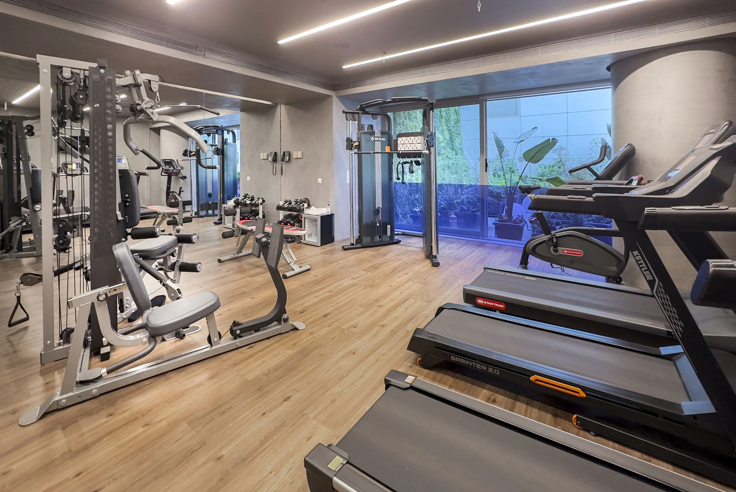 Open daily from 07:00 – 23:00, the gym offers everything you need for a complete workout — from cardio machines and free weights to yoga mats and step platforms — all set in a naturally lit environment overlooking the city.